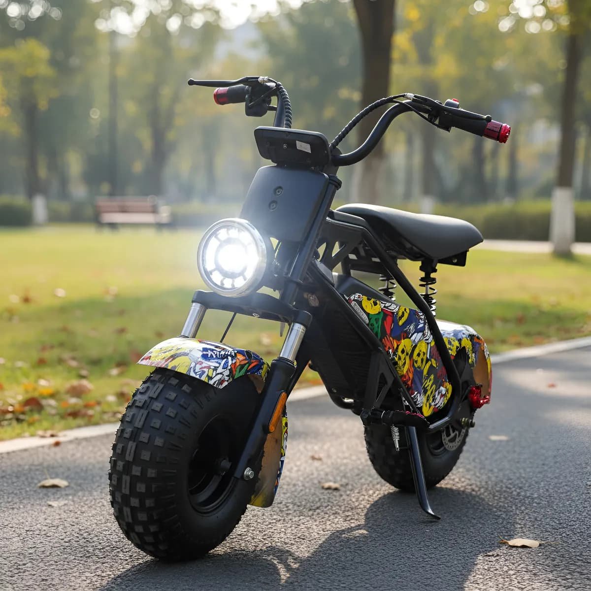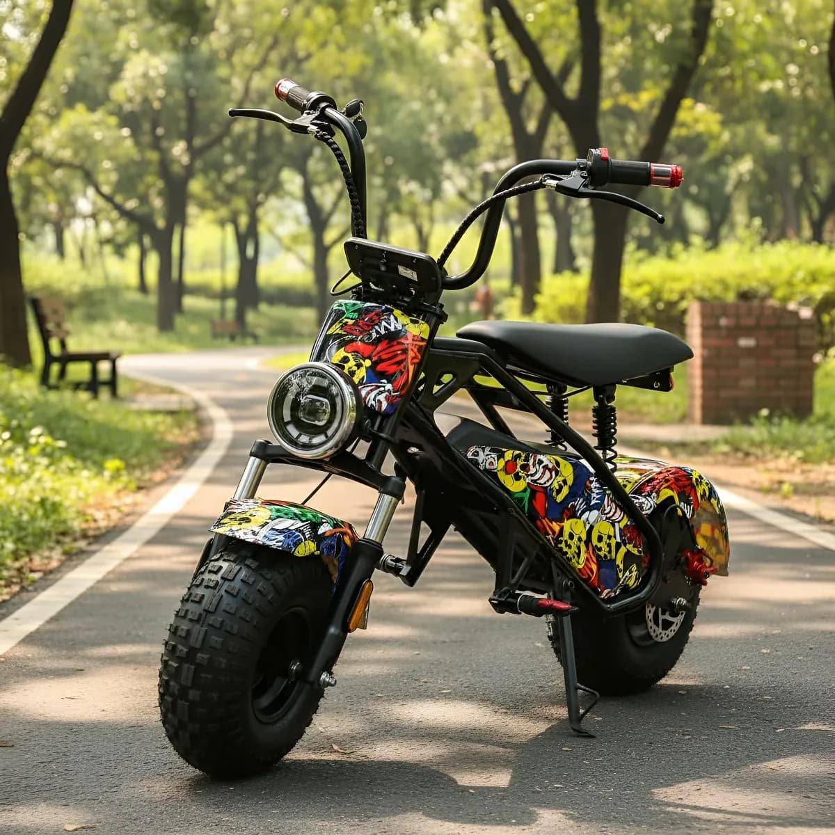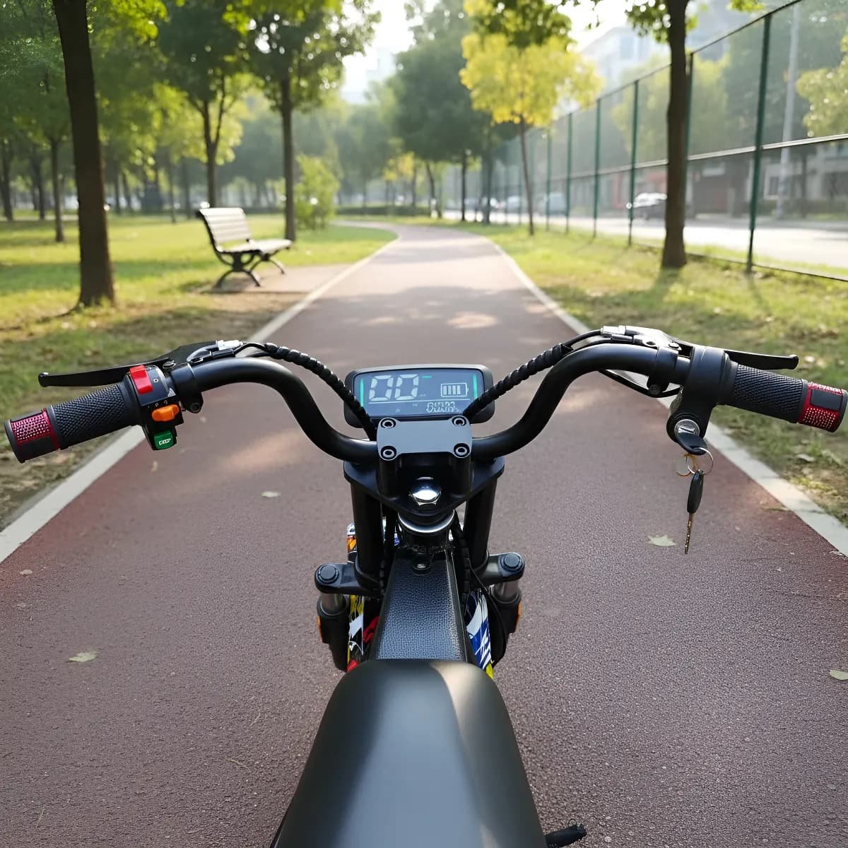 La moto eléctrica para niños (unisex) de alta calidad de 48V 1000W está diseñada para niños de 8 a 16 años, ofreciendo hasta 45 kilómetros  de diversión con una velocidad máxima de 45 – 50 kms/h . Su diseño ergonómico se adapta a niños entre 130 y 160 cm, asegurando comodidad y seguridad. El manillar de doble banda mejora el agarre y el control, mientras que el marco metálico duradero resiste impactos al aire libre.