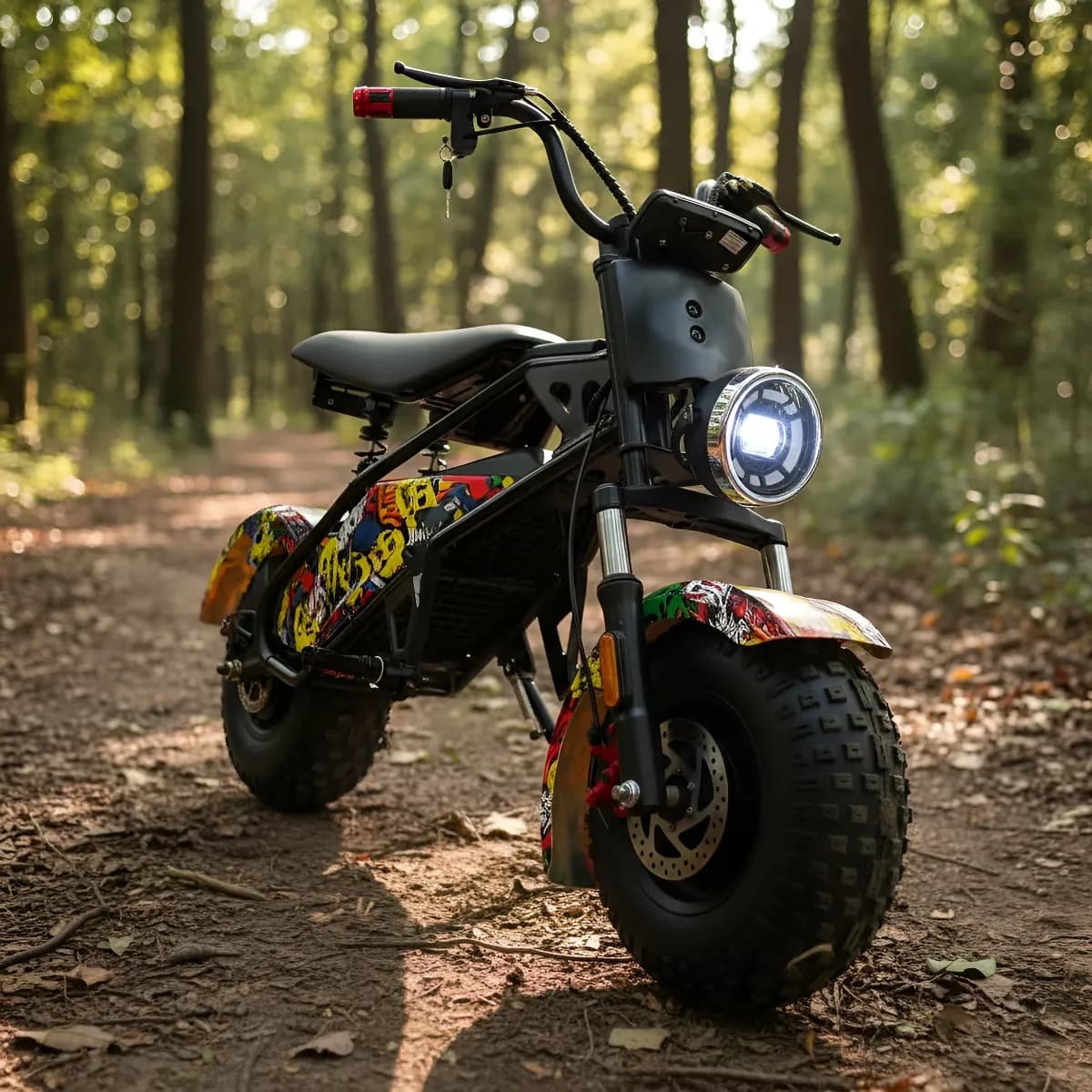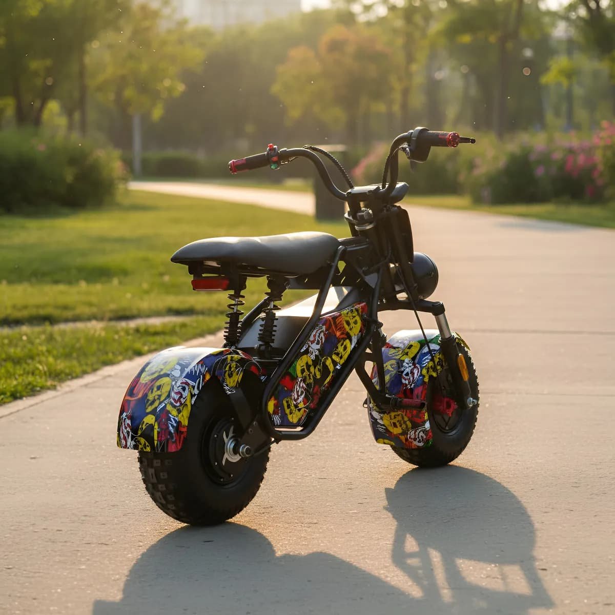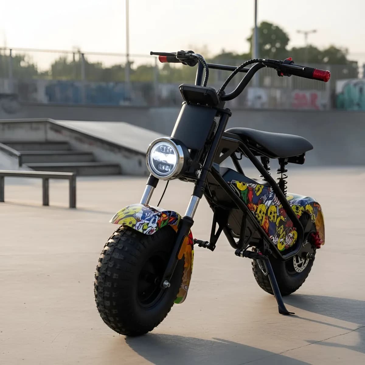 La moto eléctrica para niños (unisex) de alta calidad de 48V 1000W está diseñada para niños de 8 a 16 años, ofreciendo hasta 45 kilómetros  de diversión con una velocidad máxima de 45 – 50 kms/h . Su diseño ergonómico se adapta a niños entre 130 y 160 cm, asegurando comodidad y seguridad. El manillar de doble banda mejora el agarre y el control, mientras que el marco metálico duradero resiste impactos al aire libre.