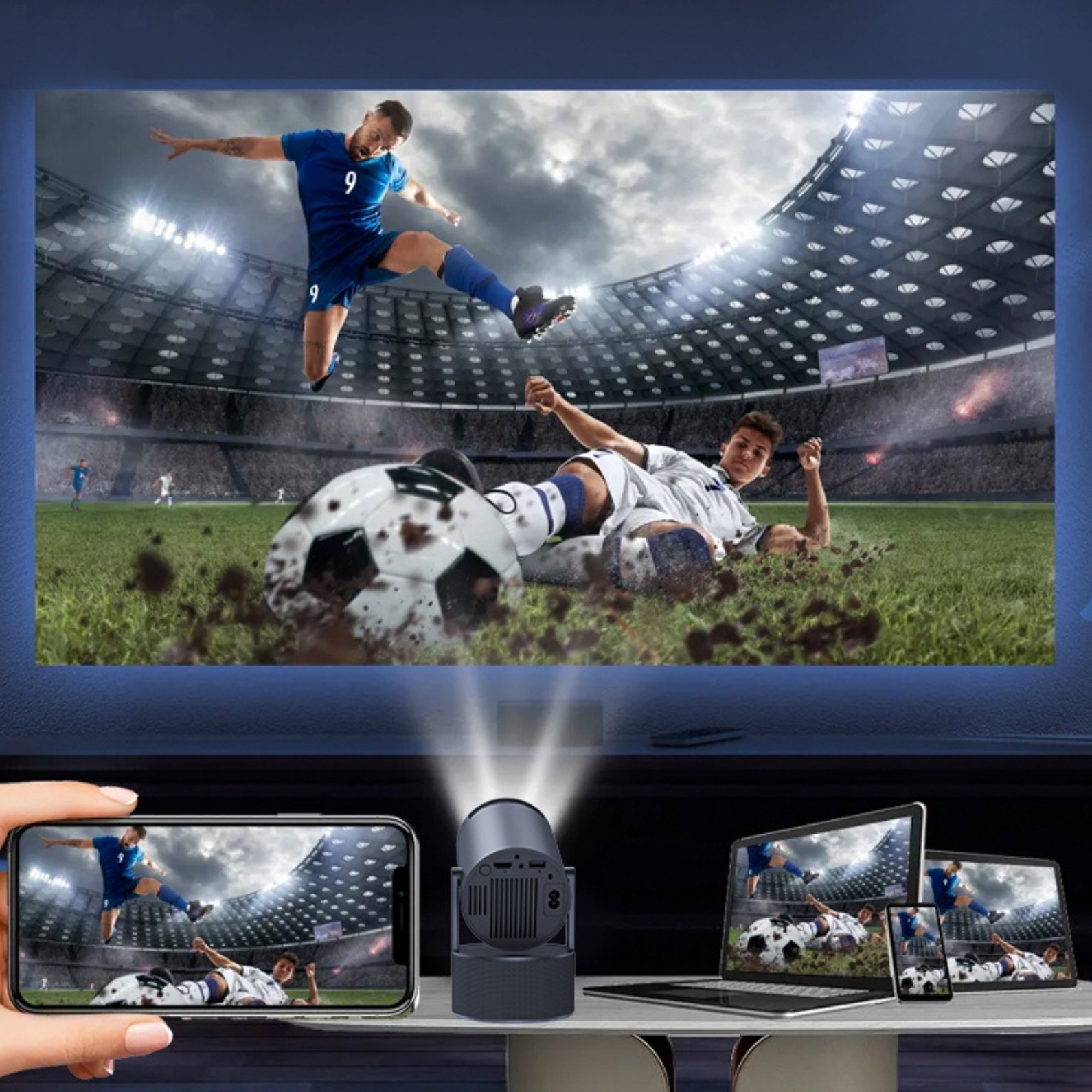 A pesar de su avanzada tecnología, el Proyector HY300 Pro KTV presenta un diseño compacto que se adapta perfectamente a cualquier espacio. Ya sea en una sala de estar, dormitorio o exterior para una noche de películas al aire libre, este proyector ofrece comodidad sin comprometer el estilo.